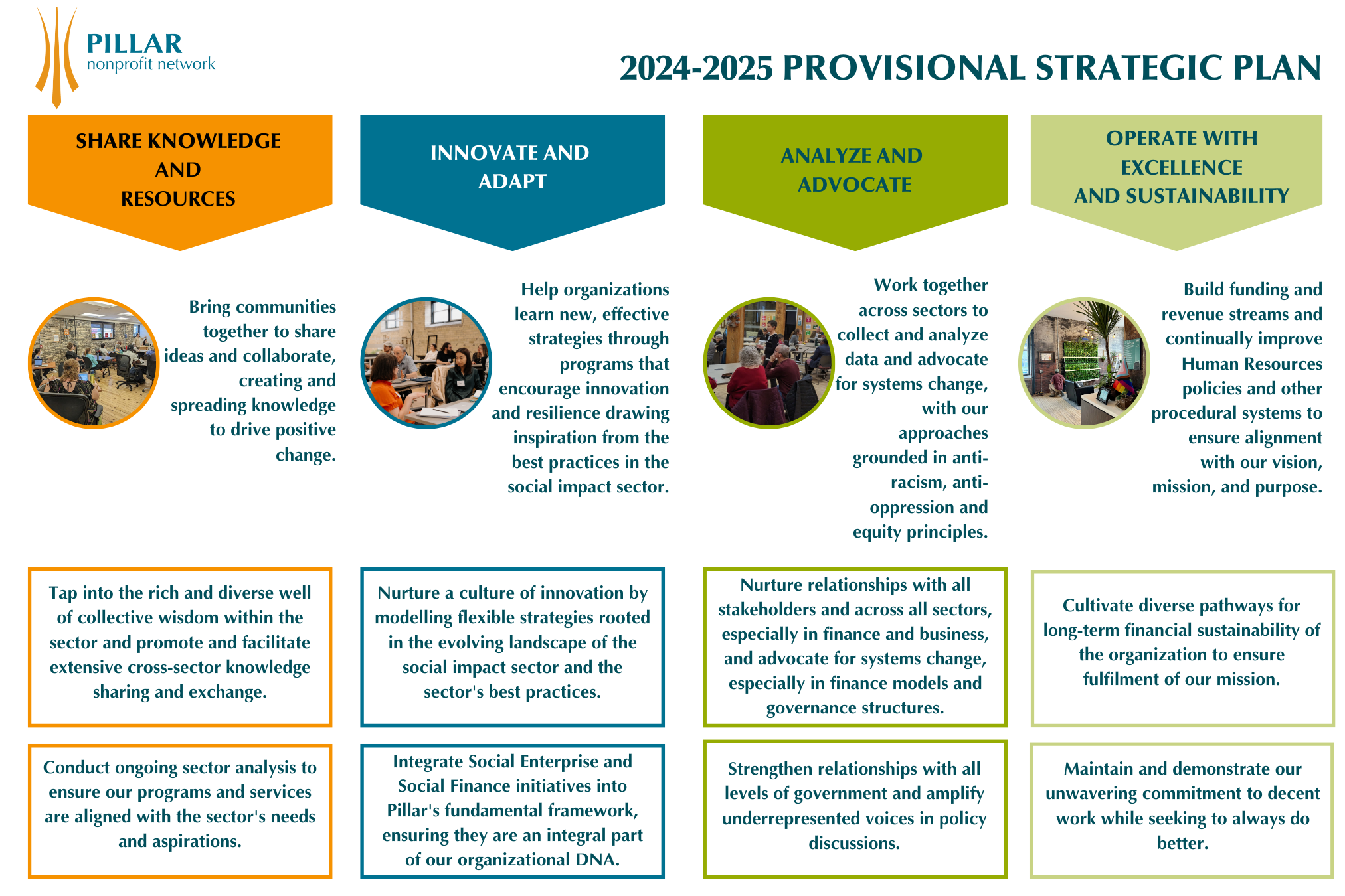 Pillar Nonprofit Network is dedicated to enhancing the operational capabilities of the impact sector. We promote equity through shared knowledge and community collaboration. We act as a catalyst and advocate for transformational change.