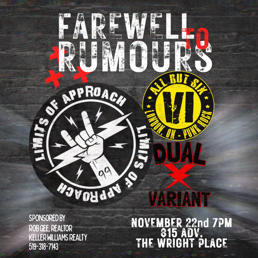 Join us for an unforgettable evening of live music featuring local bands in the old Rumours building. This venue is soon to be transformed into The Wright Place, an arts centre and theatre, but tonight, we celebrate the nostalgia and say Farewell to Rumours.